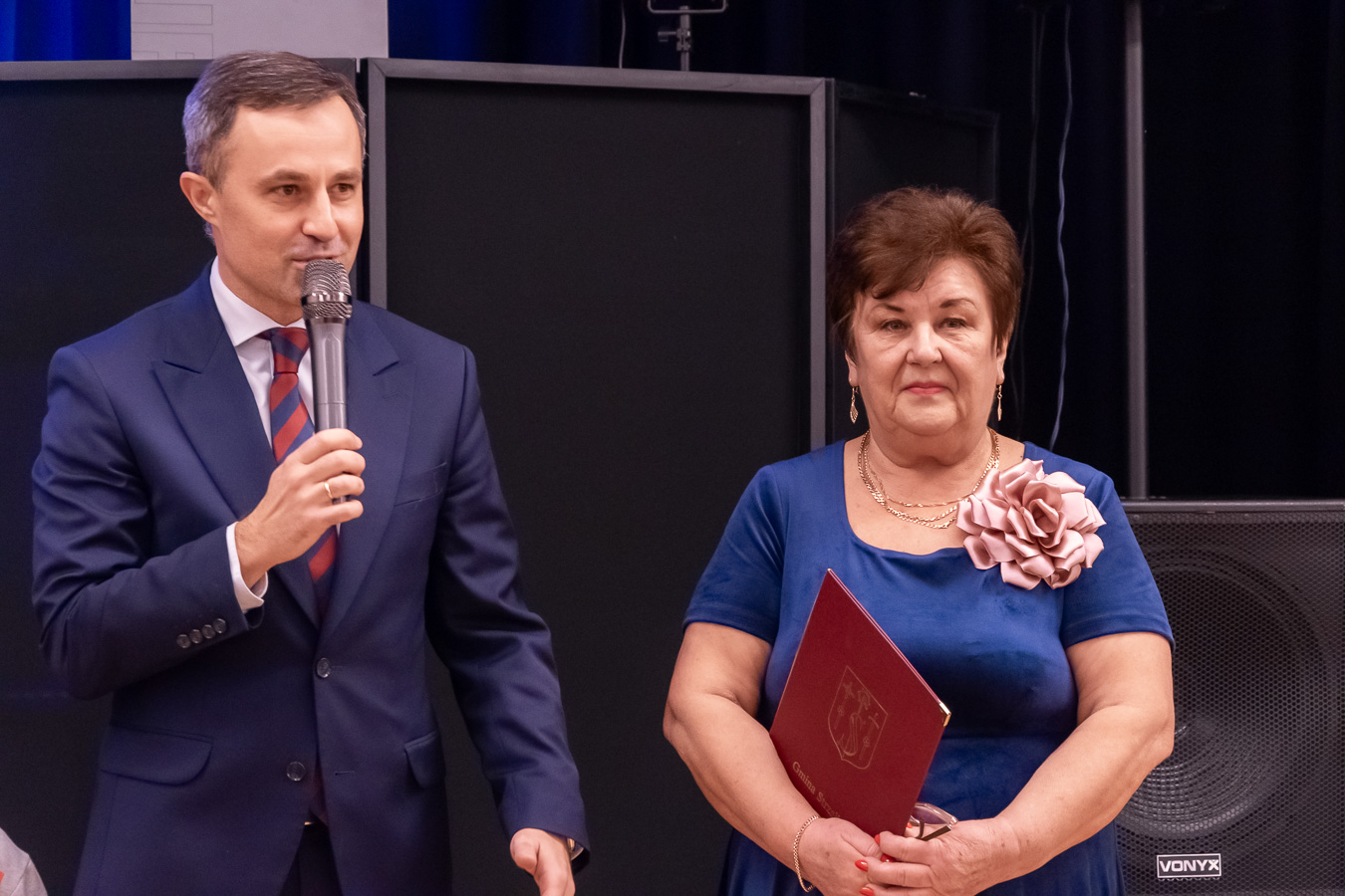 Uczestników spotkania powitała prezes SSOSiN Elżbieta Nadkowska, natomiast życzenia babciom i dziadkom złożył wójt Tomasz Gałan, tym razem wspólnie z synami.