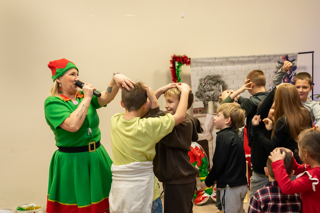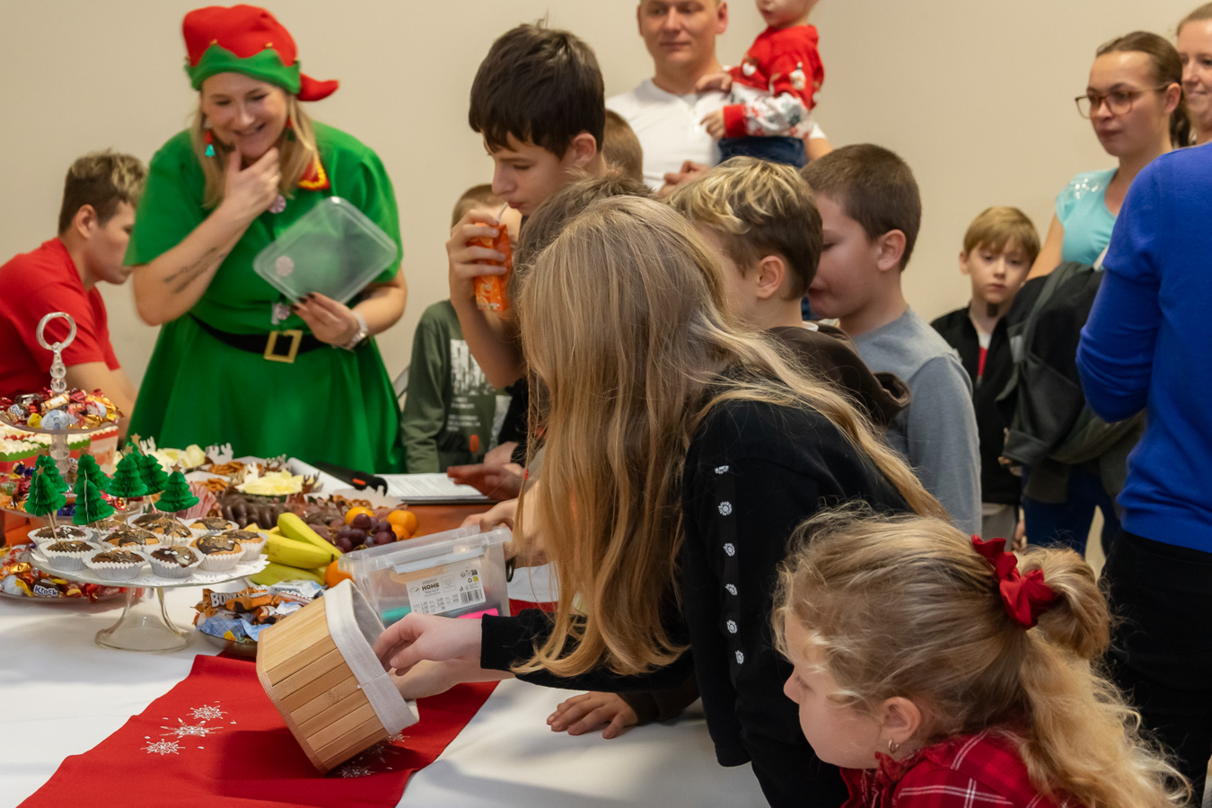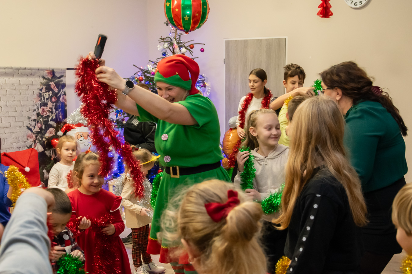 Dzieci aktywnie uczestniczyły w pomysłowych animacjach, dekorowały pachnące pierniki oraz tworzyły własnoręczne ozdoby świąteczne. Uczestnicy mieli również okazję zrobić pamiątkowe zdjęcia na tle choinki i świątecznych dekoracji, a słodki poczęstunek dodatkowo umilał wspólny czas. Na zakończenie wydarzenia pojawił się Mikołaj, który wręczył wszystkim dzieciom długo wyczekiwane prezenty.