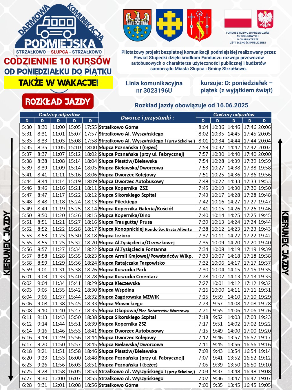 Strona główna News Przypominamy rozkład jazdy darmowej komunikacji podmiejskiej Strzałkowo – Słupca – Strzałkowo