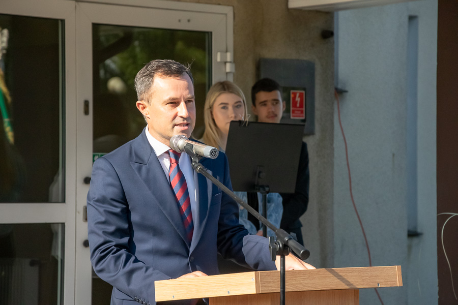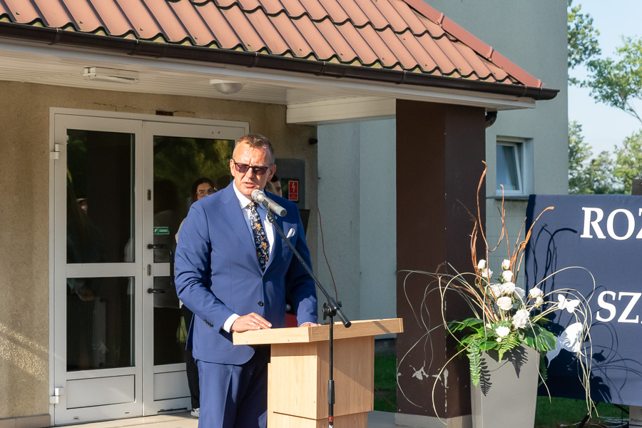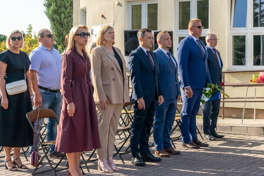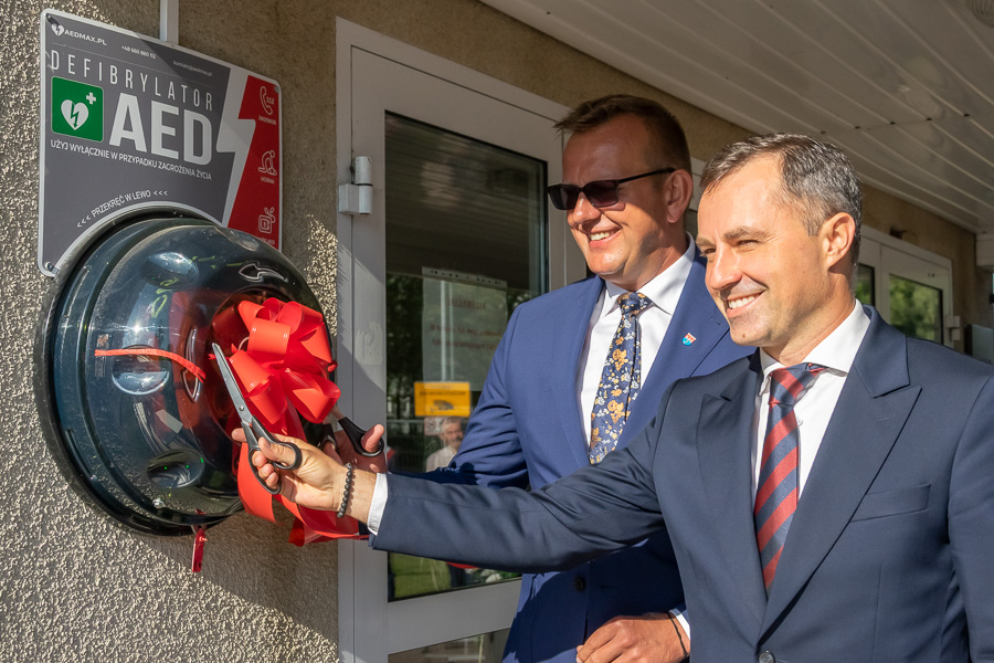 Tegoroczna uroczystość miała wyjątkowy charakter – starosta słupecki Marek Dąbrowski oraz wójt Tomasz Gałan oficjalnie odsłonili i oddali do użytku defibrylator zewnętrzny (AED). Urządzenie zamontowano na ścianie hali sportowej, dlatego to właśnie tam zorganizowano rozpoczęcie roku.